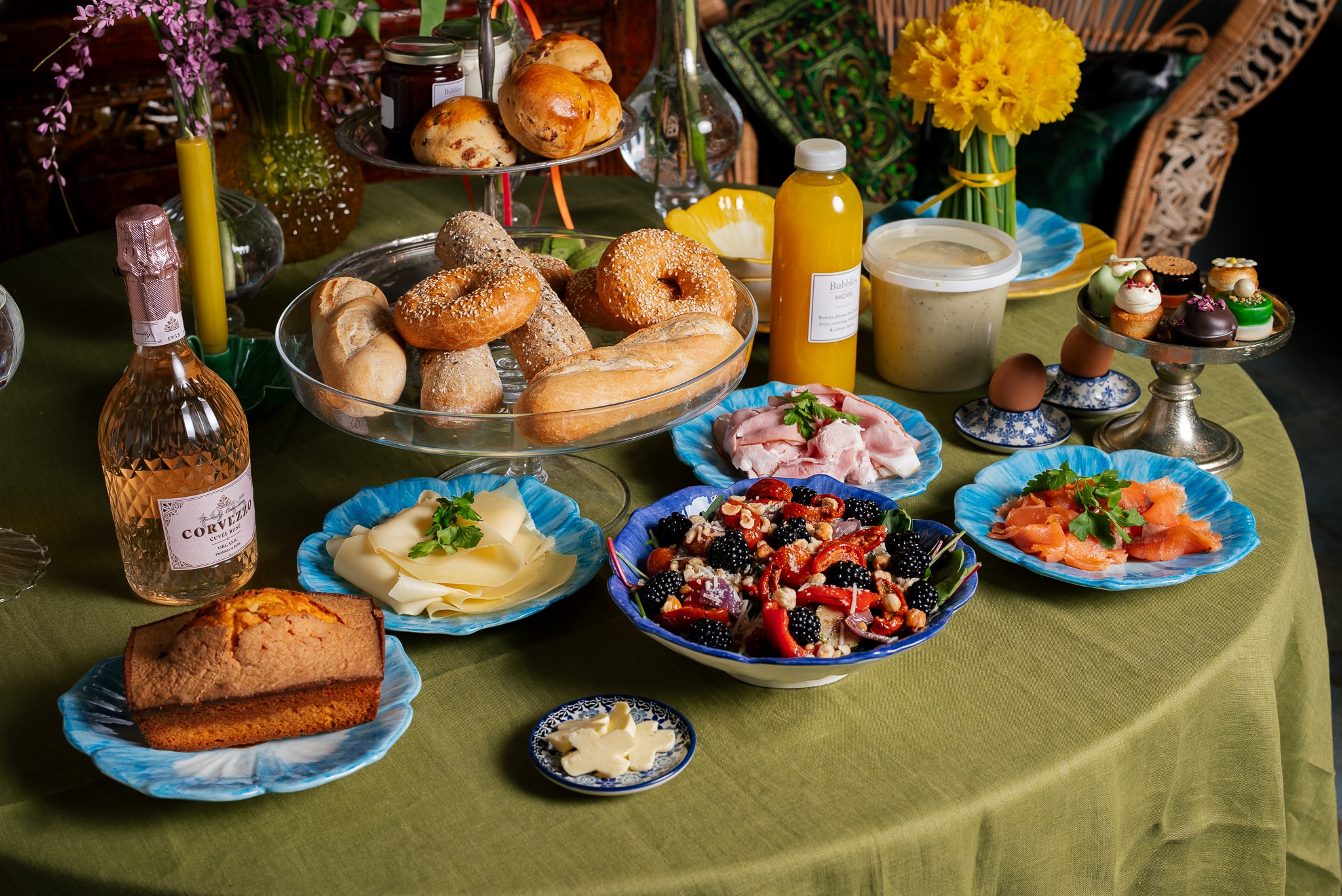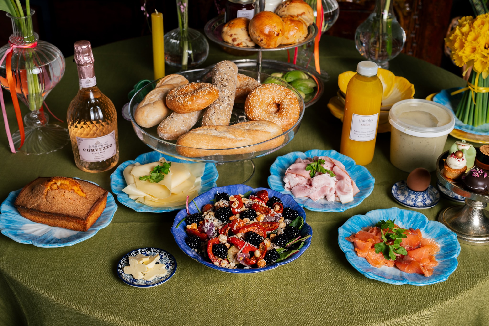 Na jarenlange ervarging met cateringen en ons food aanbod hebben we een arrangement voor jullie gemaakt wat direct op tafel kan. Heb je geen mooi servies? Laat het ons weten, dan leveren we alles tegen een meerprijs van €30,00 op mooie Bunzlau schalen. Bij Bubbles zelf zijn we het hele weekend geopend voor een speurtocht, workshop, brunch, een wandeling en natuurlijk always more.