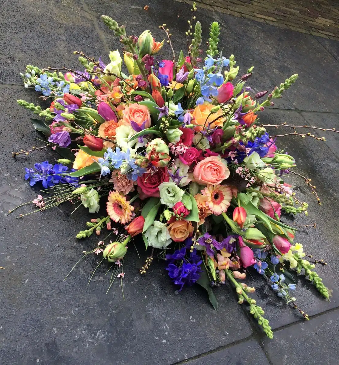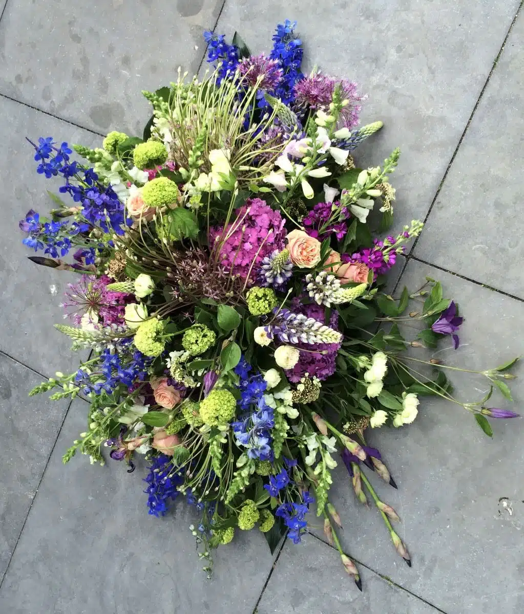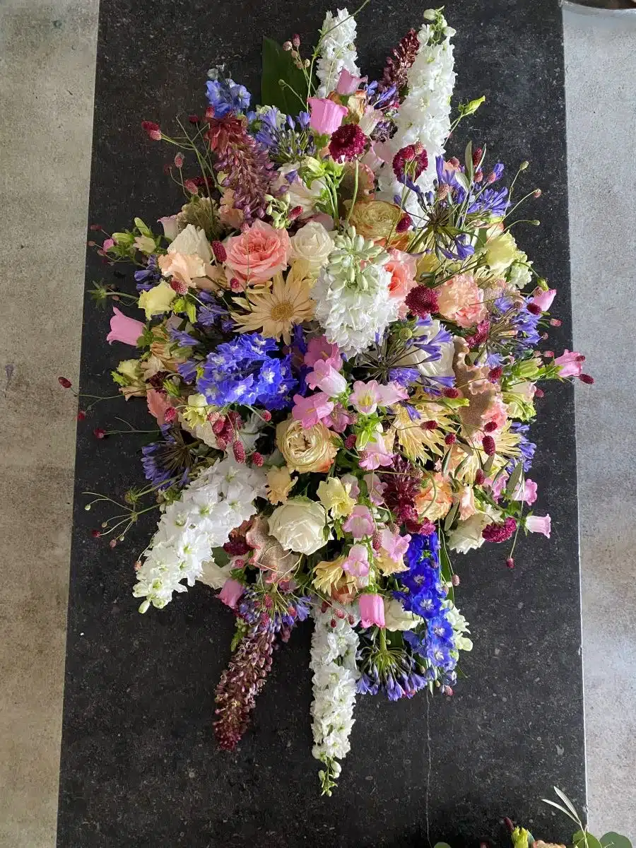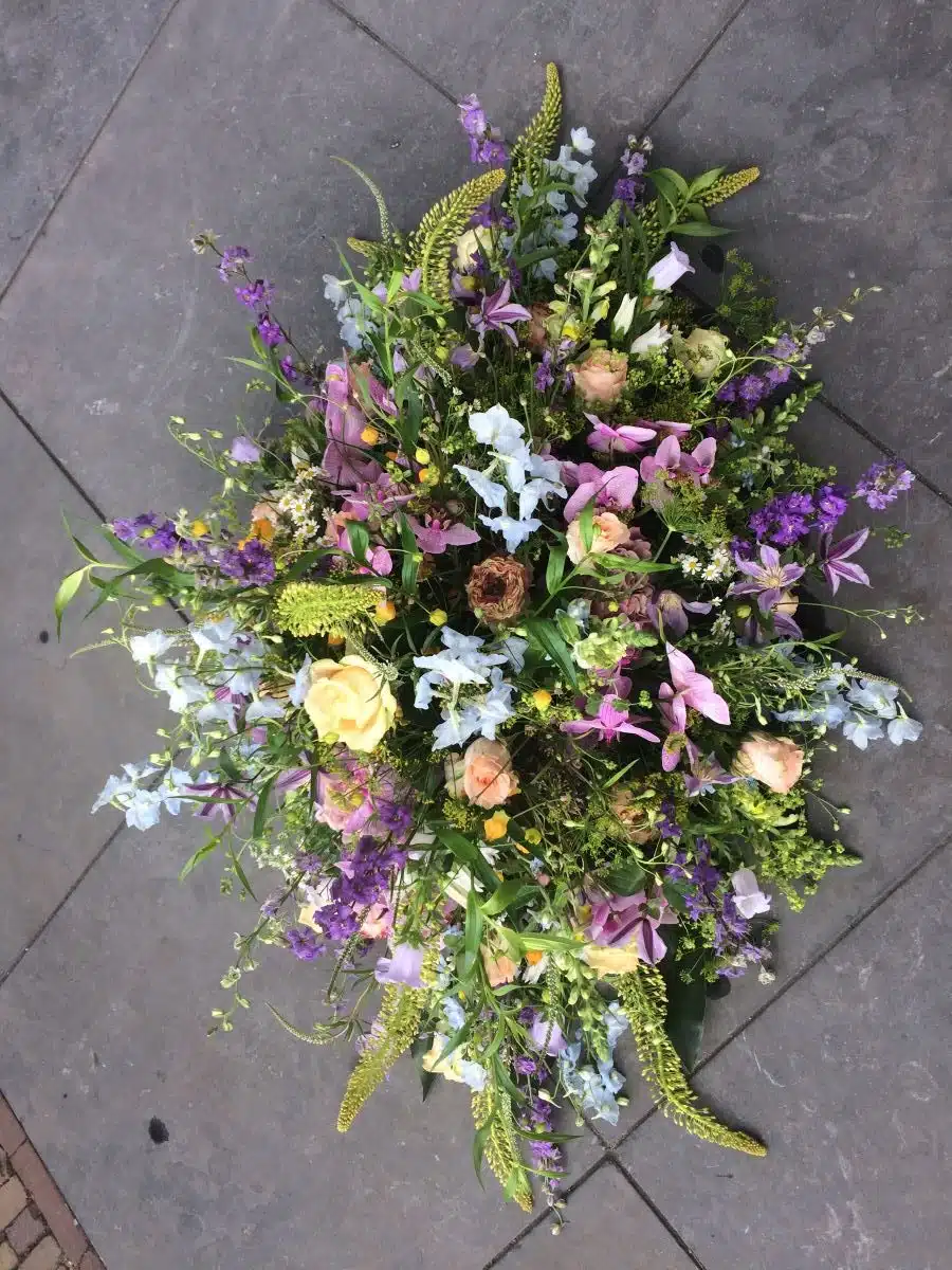 U kunt hier zelf een mooi rouwstuk samenstellen door middel van de keuzemenu’s. Wilt u bijvoorbeeld een rouwstuk bestellen met felle kleuren of juist zachte tinten? Wilt u een rouwlint laten drukken of een handgeschreven kaart toevoegen? U kunt het hieronder aan ons doorgeven.