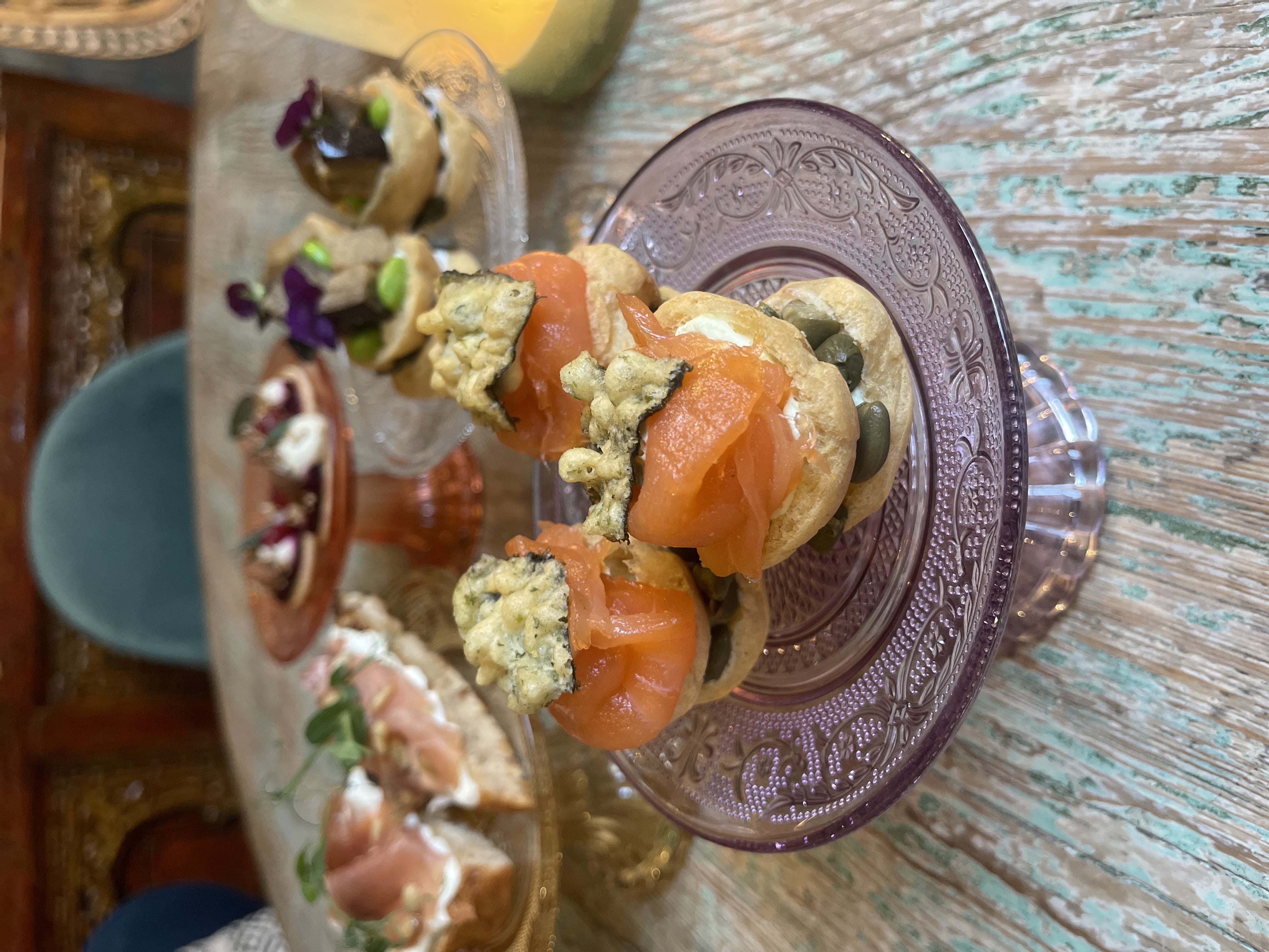 Hartig soesje met zalm, roomkaas en kappertjes